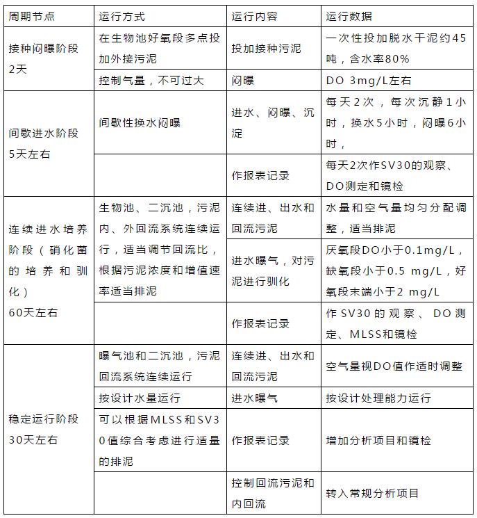 此時全面確定各項工藝參數,以工藝參數作為實際運行指導,根據實際進水水量和水質情況來來確定合適的工藝控制參數,以保證運行的正常進行和使出水水質達標的的同時盡可能降低能耗。并通過馴化實現使硝化菌與聚磷菌共存的生態系統達到平衡,確保出水水質。