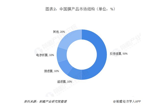 在特定產(chǎn)品方面,膜,總銷售額的50%以上的市場(chǎng)被反滲透膜(RO)和納濾膜(NF)、超濾膜(超濾),微濾膜(MF)和電滲析膜分別占10%,剩下的20%是被氣體分離膜、無(wú)機(jī)陶瓷膜、滲透膜等類型。